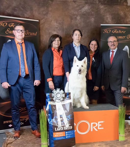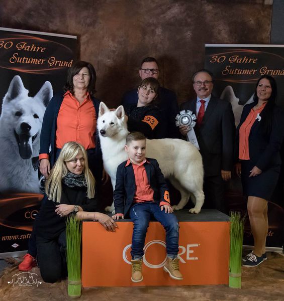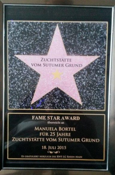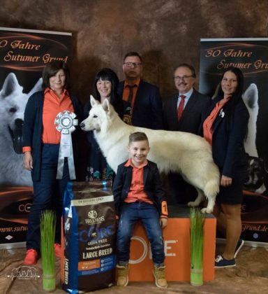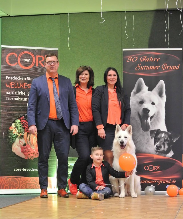Anlässlich des 30 jährigen Bestehens der Zuchtstätte vom Sutumer Grund erhielt die Züchterfamilie BORTEL zum dritten Mal die Ehrenmedaille für besondere Verdienste in der Zucht des Weißen Schäferhundes.