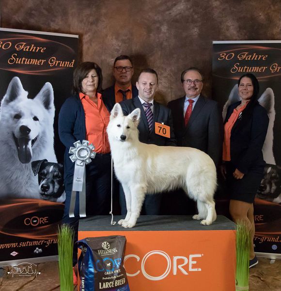 Sie war die erste Weiße Schweizer Schäferhündin aus unserer Zucht, die sowohl vom VDH als auch von der FCI anerkannt wurde, und spielte eine entscheidende Rolle in der Entwicklung und Anerkennung der Rasse.