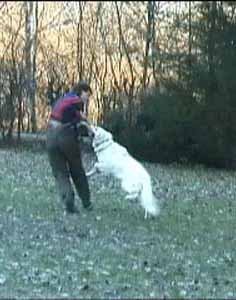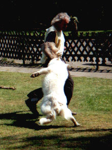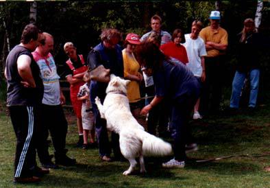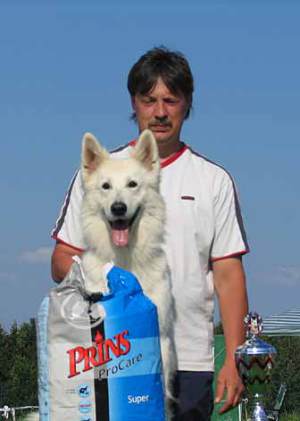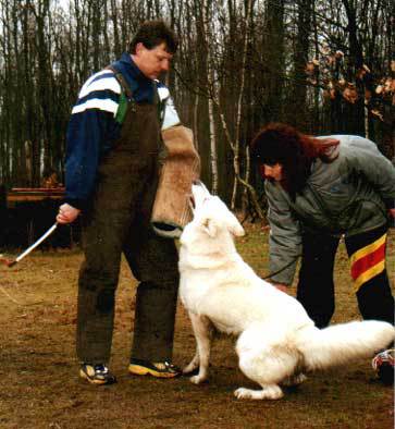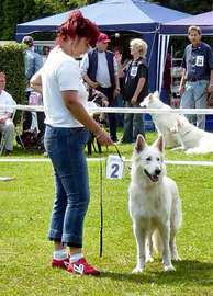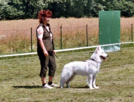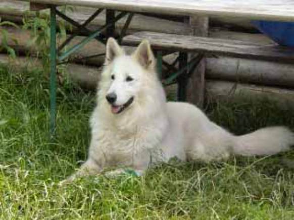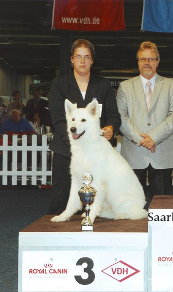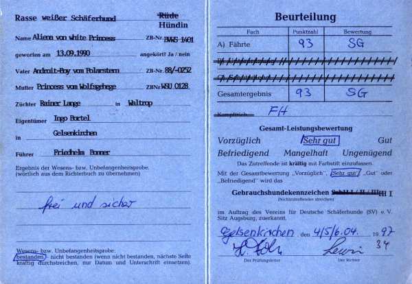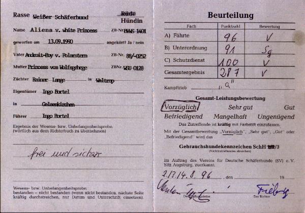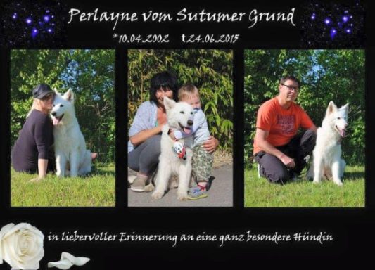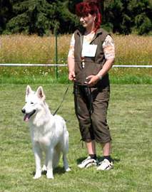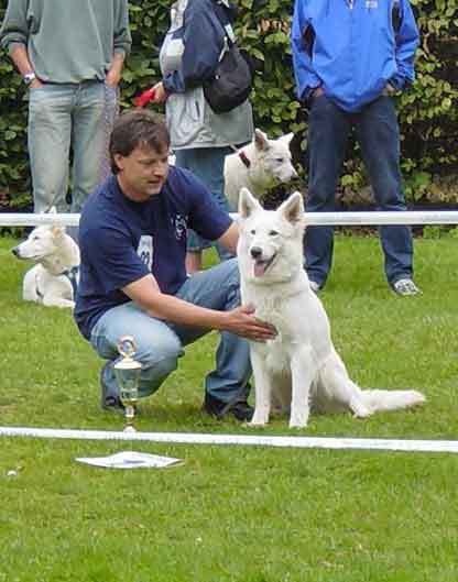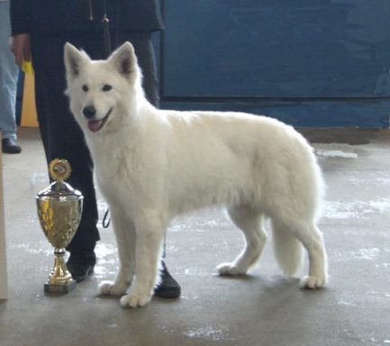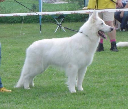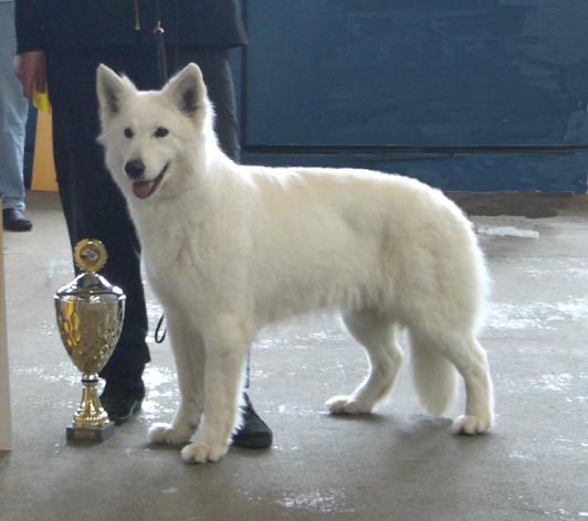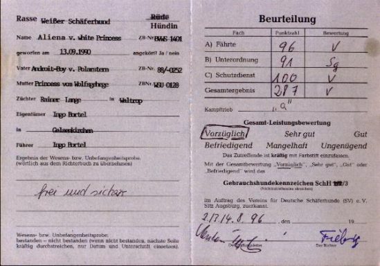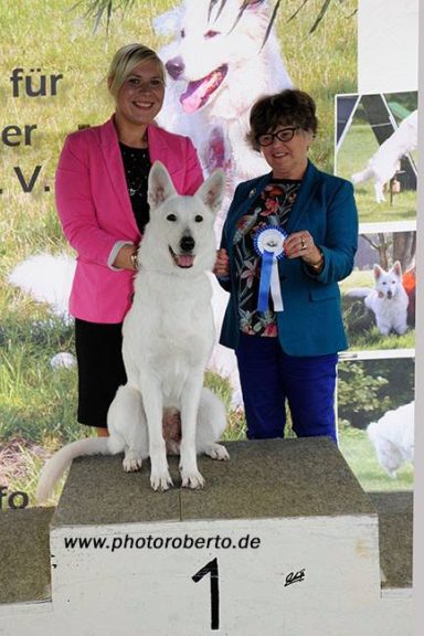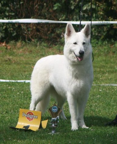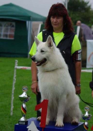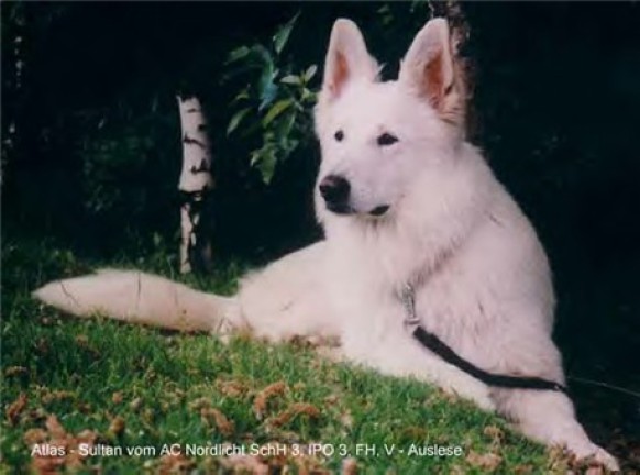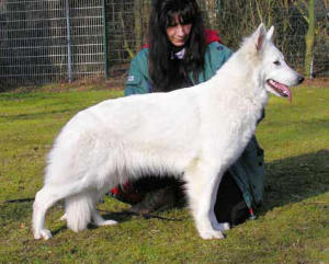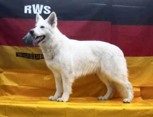 Mit ihr wurde der Zwinger vom Sutumer – Grund weit über Deutschland hinaus bekannt. Die Bedeutung der Zuchthündin für den Erfolg unserer Hundezucht kann überhaupt nicht hoch genug geschätzt werden. Die Zuchthündin ist das Fundament eines guten Zwingers und ist für uns der Schlüssel zum züchterischen Erfolg. Sie ist wohl die einzige weiße Schäferhündin die im Schutzdienst mit 100 Punkten vorzüglich bewertet wurde und dazu noch ausgestattet ist mit einem umweltfreundlichem Wesen. Als einen besonderen Hund wurde sie im Oktober 1996 in der DWS Zeitung des BVWS vorgestellt.