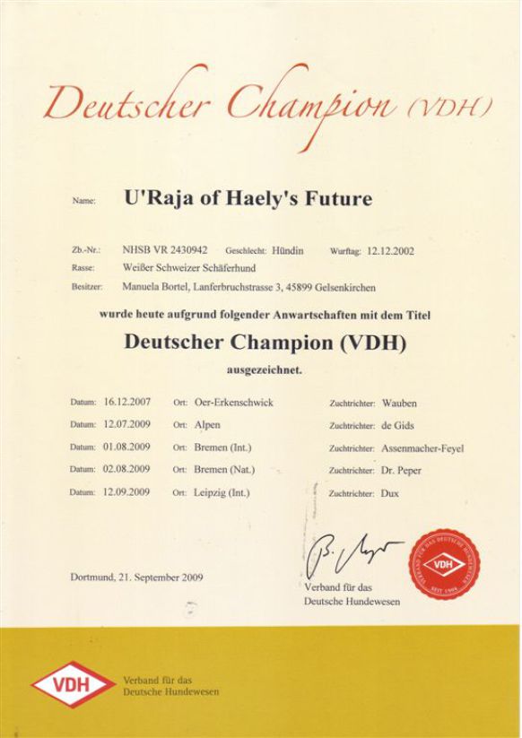 Seit dem 14.09.2004 uneingeschränkt VDH Zuchtzugelassen