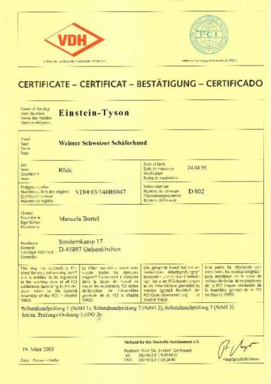 WT: 24.03.2003, HD-B (VDH), ED-0 (VDH)