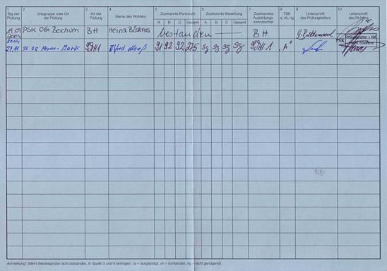 Bestes Ergebnis A 94, B 95, C 99 Punkte = 288 P. vorzüglich