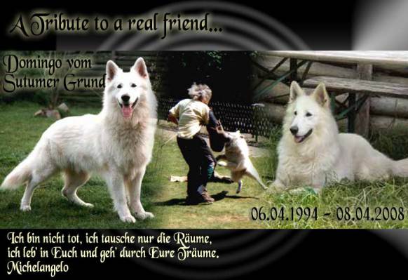 Gestern (08.04.2008) mußte ich mich, 2 Tage nach seinem 14. Geburtstag, von meinen heiß geliebten DOMINGO verabschieden.