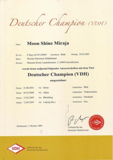 - 2011 – VDH Europasieger, Best of Breed