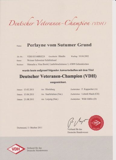 - 2012 – VDH Veteran Bundessiegerin