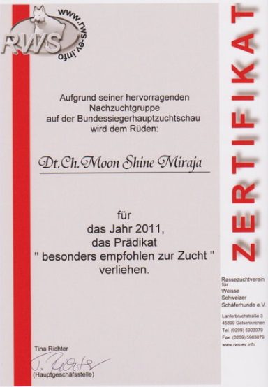 - 2011 – RWS Bundessieger, Best of Breed, Vorzüglich Auslese 1