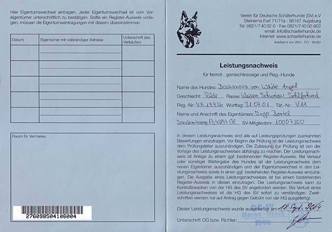 Bossanova von White Angel hat am 09.- 10. Juni.2006 die SchH 3 bestanden